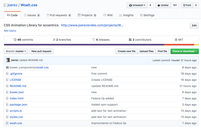 Over a period of a week or so, Woah.css started trending on GitHub due to all of the views it was getting from Reddit. I conveniently made it very easy to star the project and this resulted in woah.css getting over 100 stars.