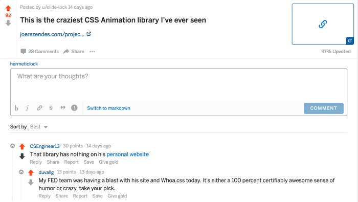 Following the mantra, Ship Early and Ship Often, As soon as I had five animations I posted it on Reddit’s Frontend subreddit. To my delight it became the weeks most popular post.