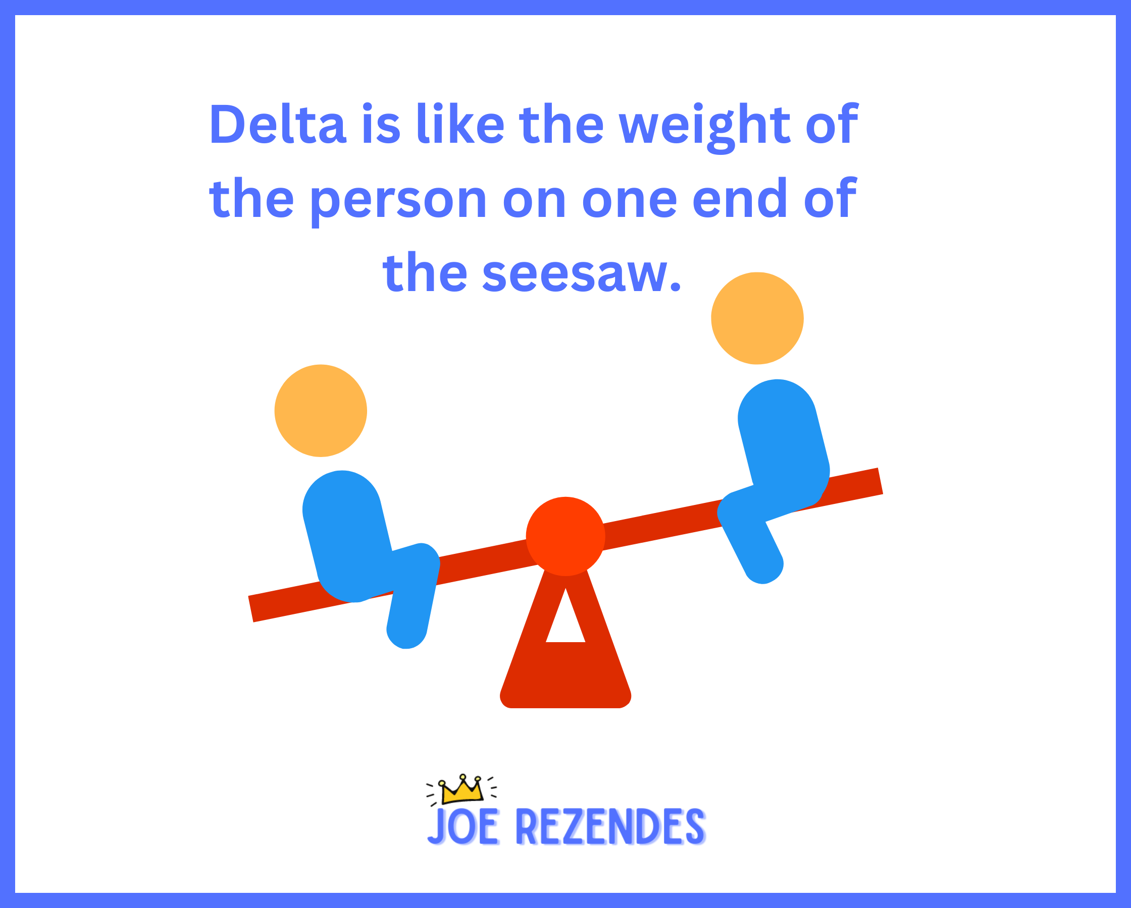 Imagine a seesaw at the park. Delta is like the weight of the person on one end of the seesaw. If the person is very heavy (high delta), then it will take a lot more force to move the seesaw. If the person is very light (low delta), then it will be easy to move the seesaw.